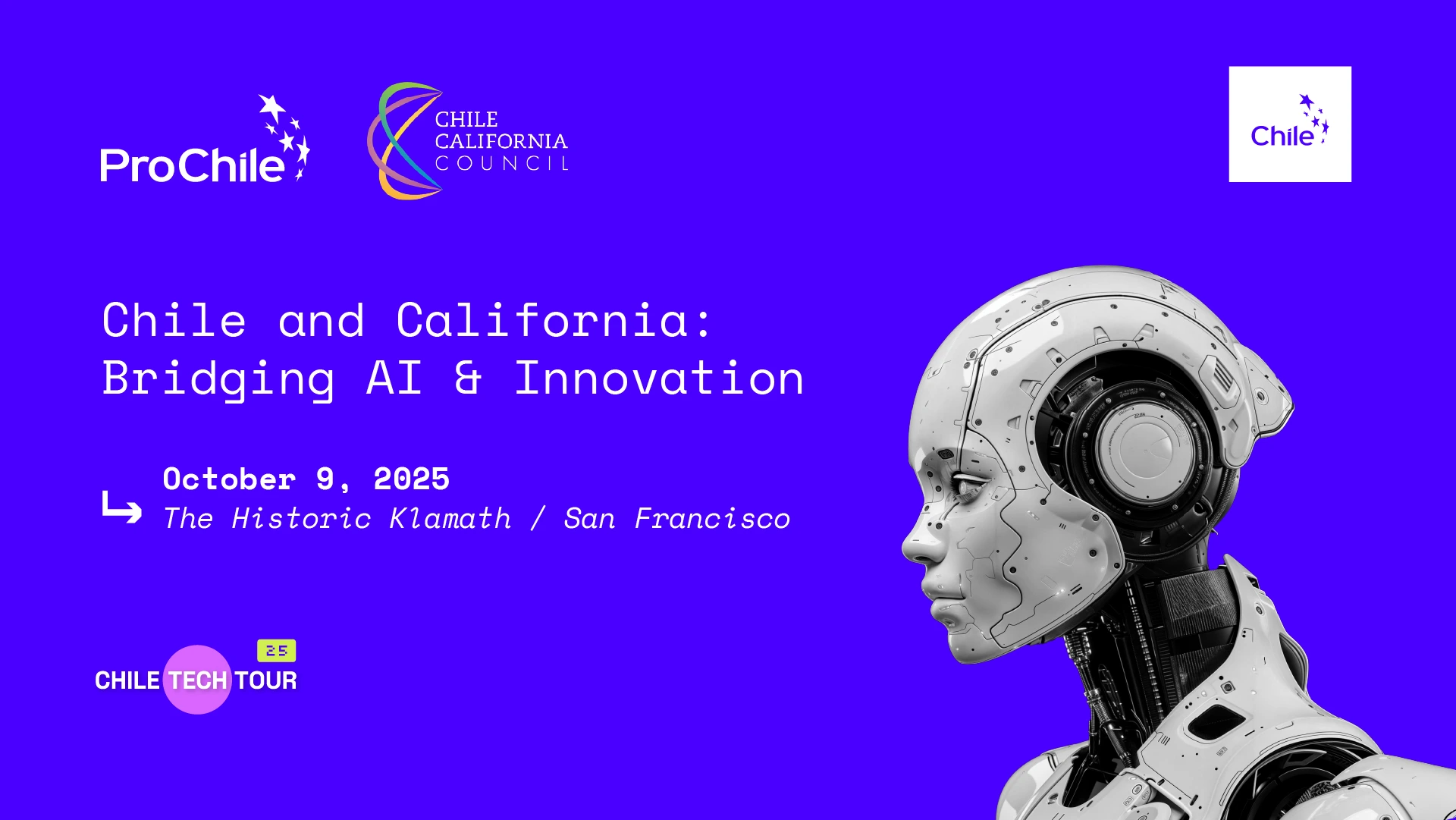 This event, presented by the Chile California Council and ProChile (Chile’s Export Promotion Bureau), in partnership with Chile's Industry and Technology Attaché, brings together industry leaders, policymakers, researchers, and entrepreneurs from Chile, California, and beyond. Together, we will explore the transformative potential of innovative technologies—particularly artificial intelligence in Latin America—with a focus on fostering collaboration, sharing knowledge, and building strategic partnerships to drive innovation and economic growth. The program will feature a keynote presentation, expert panels, and a startup pitch session highlighting cutting-edge Chilean ventures in agritech and climate tech. The day will conclude with a reception hosted by the Ambassador of Chile, H.E. Juan Gabriel Valdés, offering participants a unique opportunity to strengthen ties and build networks in a dynamic setting. As an official event of San Francisco Tech Week, this gathering will convene entrepreneurs, founders, investors, and thought leaders from both Chile and California to spotlight Chile’s emergence as Latin America’s innovation powerhouse. Discussions will center on how AI and other transformative technologies can address regional challenges, open new opportunities, and accelerate innovation across both regions. This gathering is also a key strop in the Chile tech Tour 2025 - Connecting Chile and US Innovation - and an ambitious initiative to highlight Chile’s growing role as a leading innovation hub in Latin America - connecting its most promising technologies and public-private leaders with US innovation hubs, in particular with Silicon Valley's dynamic ecosystem.